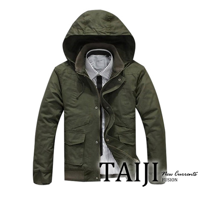TAIJI 街頭風格?收腰抽繩設計翻蓋口袋連帽夾克外套?綠色商品網址: