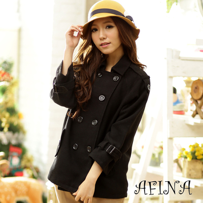 【AFINA】毛呢雙排釦風衣式外套-黑色商品網址: