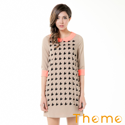 Theme 學院領七分袖洋裝-剪花造型(卡其)