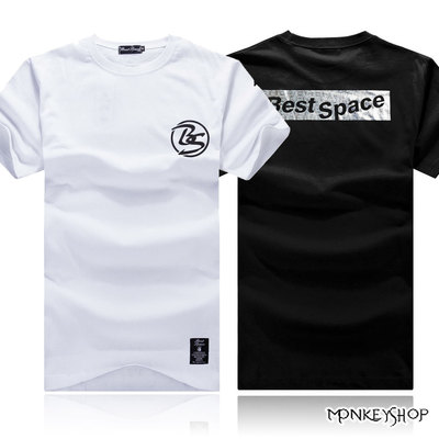 小猴子的賣場 潮流背面雷射燙銀字母印花短袖T恤-2色