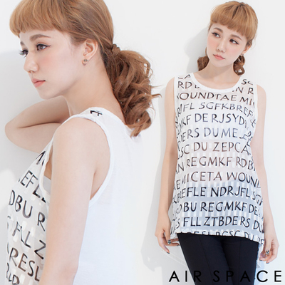 AIR SPACE 透視字母拼接無袖上衣(個性白)
