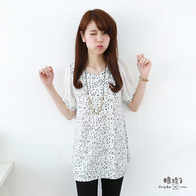 糖罐子-大小星星雪紡袖寬擺棉衫(共二色)