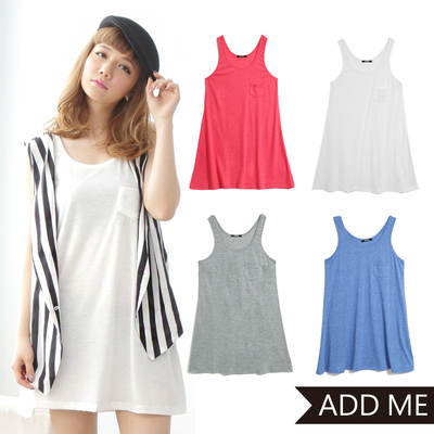 ADD ME 素面口袋傘狀長版背心裙(共四色)商品網址: