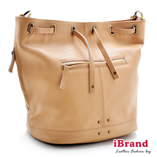 【i Brand 真皮包包】玩美率性-牛皮時尚兩用水桶包(優雅杏)