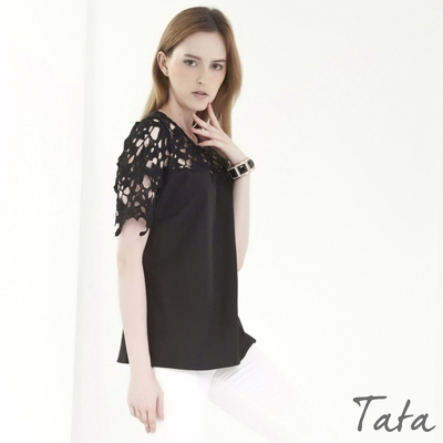 蕾絲鏤空拼接雪紡短袖上衣 TATA