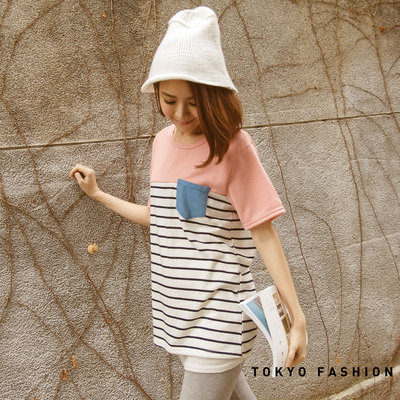 東京著衣 配色條紋牛仔口袋T恤(共三色)