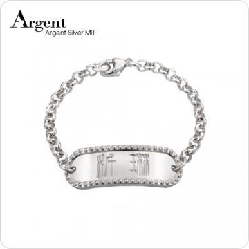 【ARGENT銀飾】名字訂製系列「純銀-長方橢圓牌-花邊款-單面刻字」純銀手鍊(搭配手工鍊)