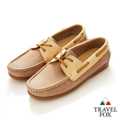 Travel Fox(男) 旅狐帆船鞋 - 斜刻布紋原皮植染雙料款- 沙斜棕商品網址: