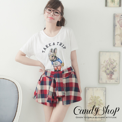 CANDY小舖 韓國TRIP兔子穿衣純白色圓領短袖上衣