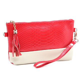 【Angella Baby真皮皮夾】流蘇拉鍊鱷魚紋配色金鍊小包(9色)