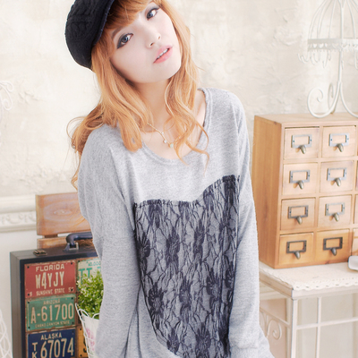 蕾絲愛心薄毛織長上衣(甜淺灰)-Kilei綺麗