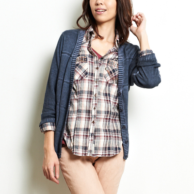 GARCIA 漸層格紋金色鉚釘襯衫(粉色)商品網址: