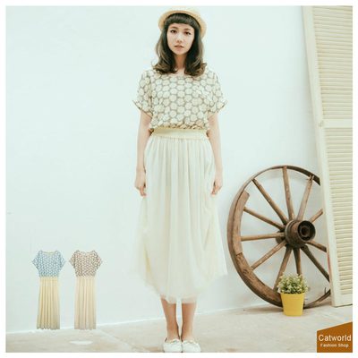 直到網友Michael介紹我上網買了一件Catworld 假口袋印大花拼網紗長洋裝共二色,想不到品質和剪裁真的和夜市OR路邊攤差很多!!