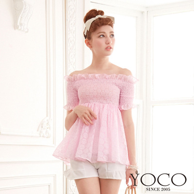 東京著衣-YOCO 小花露肩傘狀上衣(共二色)