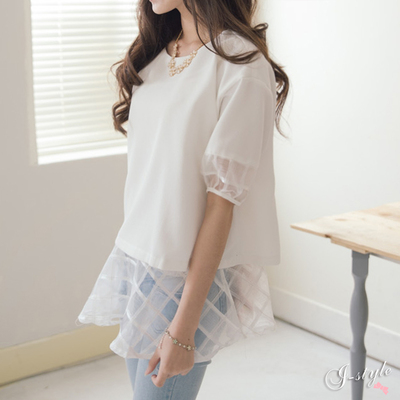 異材質方格紗拼接後緞帶上衣(共二色)-I-sTyLe商品網址: