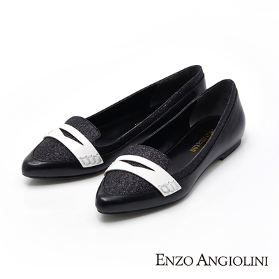 Enzo Angiolini 洗練雋永拼色尖頭平底鞋-簡約黑