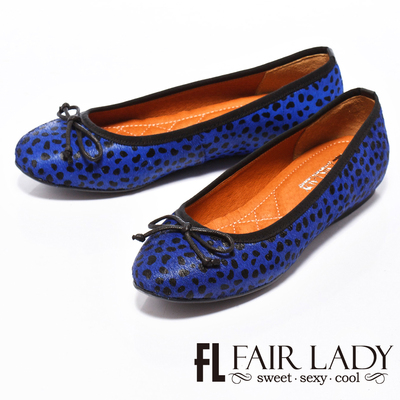 Fair Lady‧可愛奔放‧豹紋點點蝴蝶結娃娃鞋‧藍