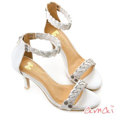 amai一字編織鉚釘高跟涼鞋-後包拉鍊.冰雪白