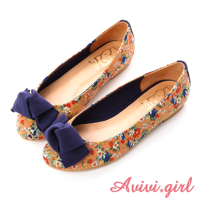 Avivi Girl ☆ 繽紛多彩印花扭結蝴蝶裝飾平底娃娃鞋(橘)