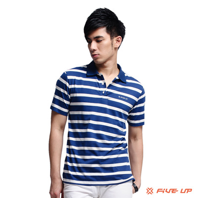 FIVE UP-藍天海洋棉條紋POLO衫-男-深海藍