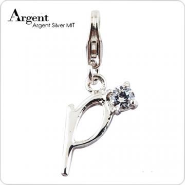 【ARGENT銀飾】隨意扣系列「晶鑽迷你字母P」純銀單墜(活動扣)