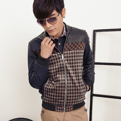 Kernel韓流復古格紋短版軟皮外套-共二色商品網址: