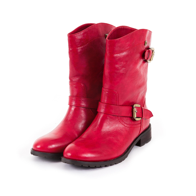 TAS 玩酷主義 仿舊感鉚釘雙環扣中筒短靴-凱莉紅商品網址: