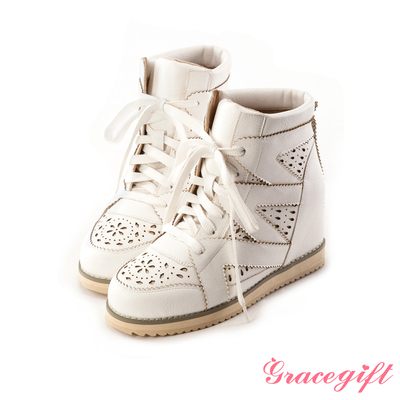 Grace gift韓妞話題-復古雕花綁帶內增高球鞋 白商品網址: