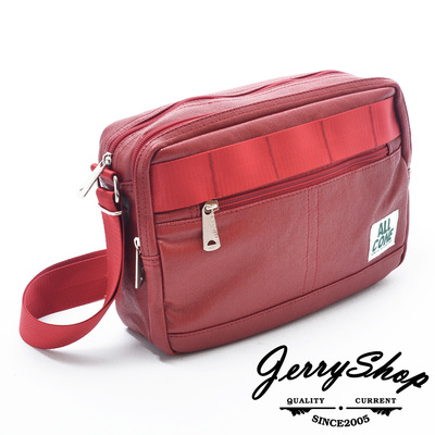 【JerryShop】日系經典帆布塗層小側背包-紅色