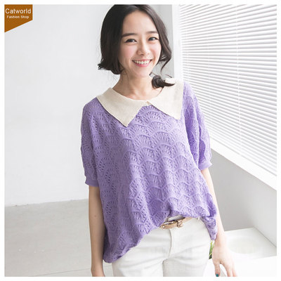 Catworld慵懶波浪線條簍空針織衫共三色