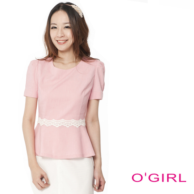 • OGIRL仿牛仔布腰車蕾絲短上衣(粉)