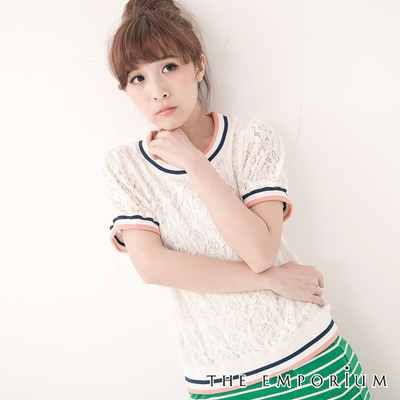 • THE EMPORIUM 公主袖螺旋蕾絲邊透膚上衣