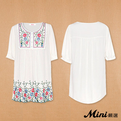 • ◆寬鬆版五分袖上衣,彩色花朵刺繡