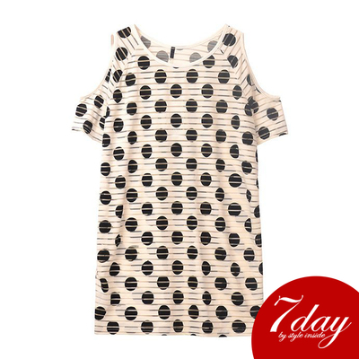 條紋縷空大波點露肩短袖寬鬆上衣(共二色) -7day