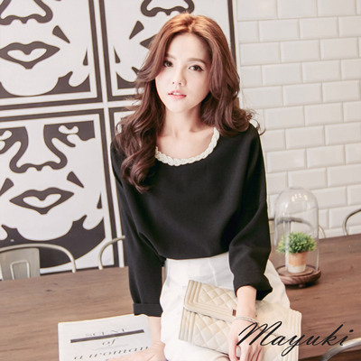 東京著衣-MAYUKI 編織珍珠領寬版上衣-S.M(共二色)-4019594