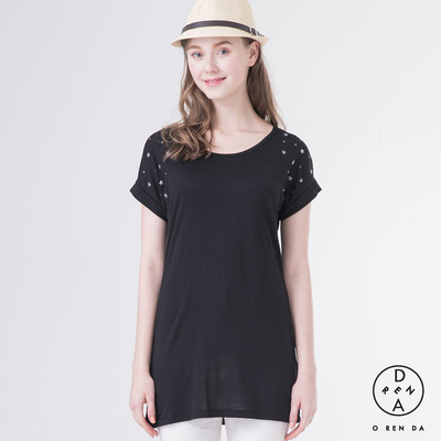 ORENDA-MIT個性鉚釘短袖上衣-S.M.L-黑