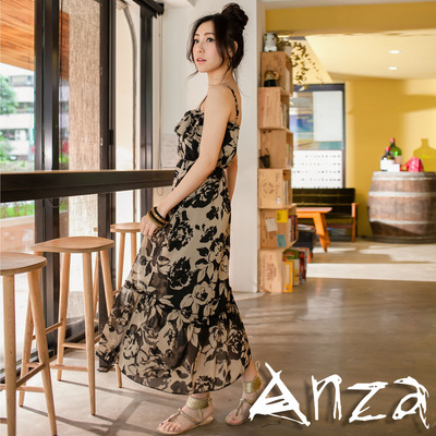 細肩帶蛋糕層次棉紗長洋裝-AnZa