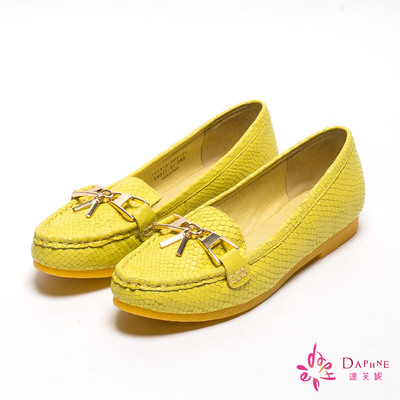 達芙妮DAPHNE 華麗貴族金鎖匙綴飾真皮休閒鞋-亮眼黃
