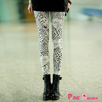 多色豹紋圖內搭長褲(共四色)-Pink Banana
