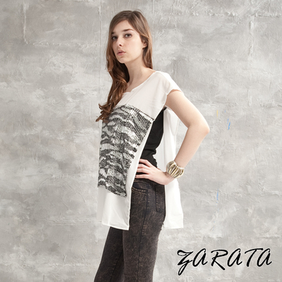 【ZARATA】罩衫-斑馬紋假二件雪紡罩衫上衣 白色