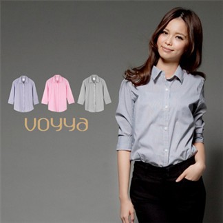 7net,7net購物網,7net雲端超商-[Voyya]防皺七分袖條紋襯衫-女-S.M.L(藍白條)