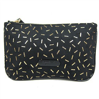 agnes b.仿舊漆點絨布化妝包 大 (黑)