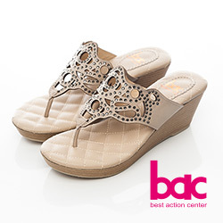 bac 率性美式派 鏤空燒花楔型涼鞋-米色