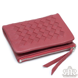 【2R】復刻羊皮限量編織短夾(甜莓紅)