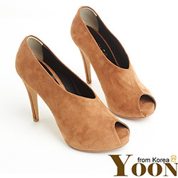 潤‧YOON-正韓空運。低調性感V口絨面露趾踝靴(駝咖)