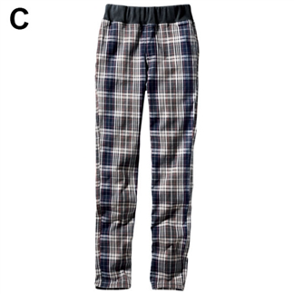 腰部有寬羅紋拼接,無緊縛感,穿起來很輕鬆。內側有抽繩,可稍作調整,令人安心。橫向彈性材質穿著時很好活動。備有可愛格紋與好搭配的黑色款式。超值價格也很有魅力。