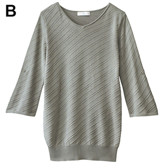 7net,7net購物網,7net雲端超商-【NISSEN日本服飾】斜紋七分袖針織上衣-灰-13夏女裝預購