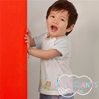 7net購物網[麗嬰房] les Baby熊列車長童趣拼貼雙色棉T -白色