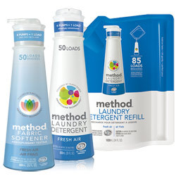 Method洗衣精不同於一般大罐包裝,而以小巧玲瓏的姿態出現。高濃縮的植物天然配方取代了一般高含水量的洗衣精,同時也縮減運費,儲藏空間,省塑料,省原油,省能源,還有減碳。