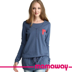 秋冬上衣,哺乳衣著,孕婦裝,婦幼玩具、童裝童鞋,【Mamaway】配色口袋長版哺乳上衣(共四色)